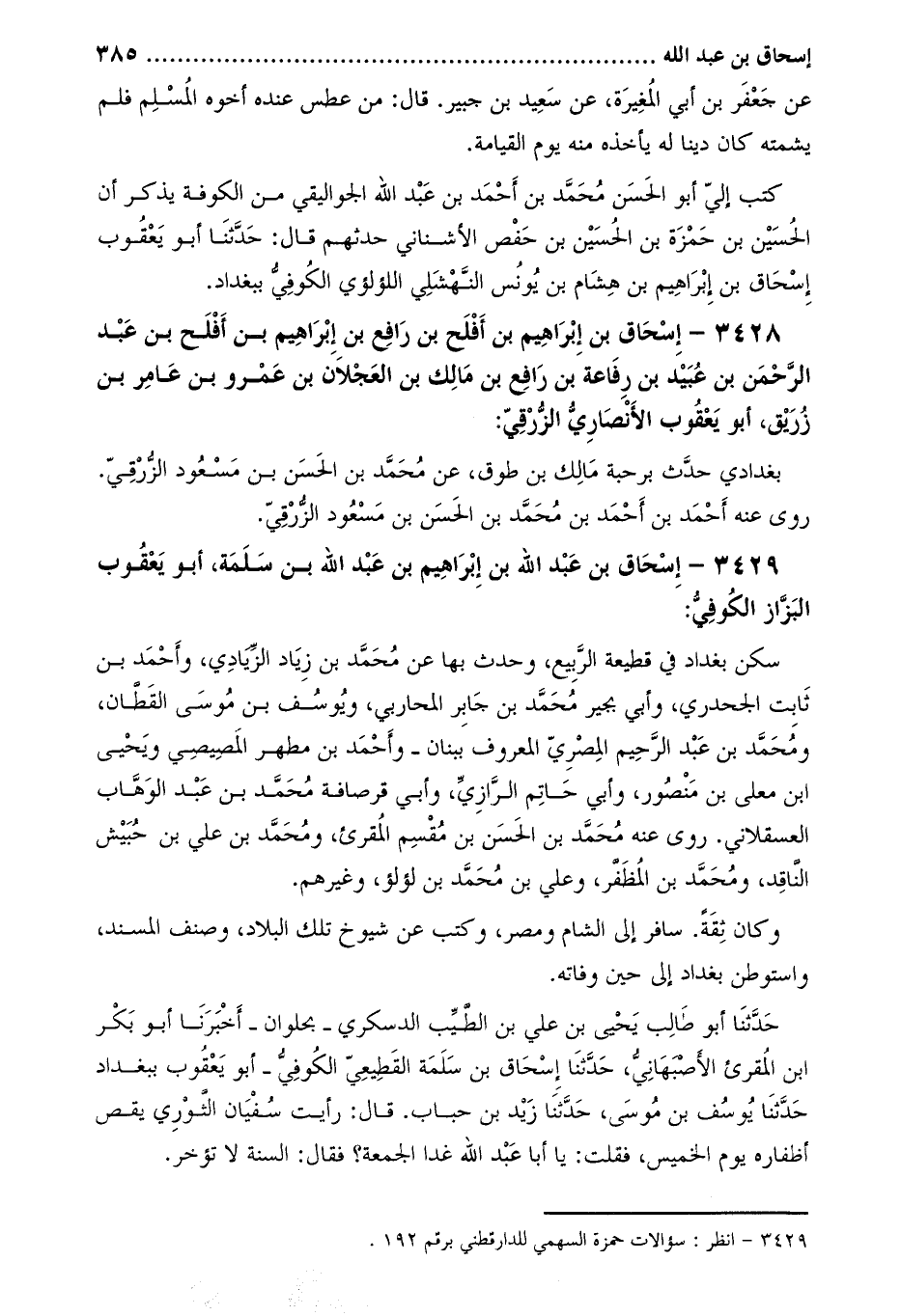[1] 3429- انظر: سؤالات حمزة السهمي للدار قطني برقم 192.