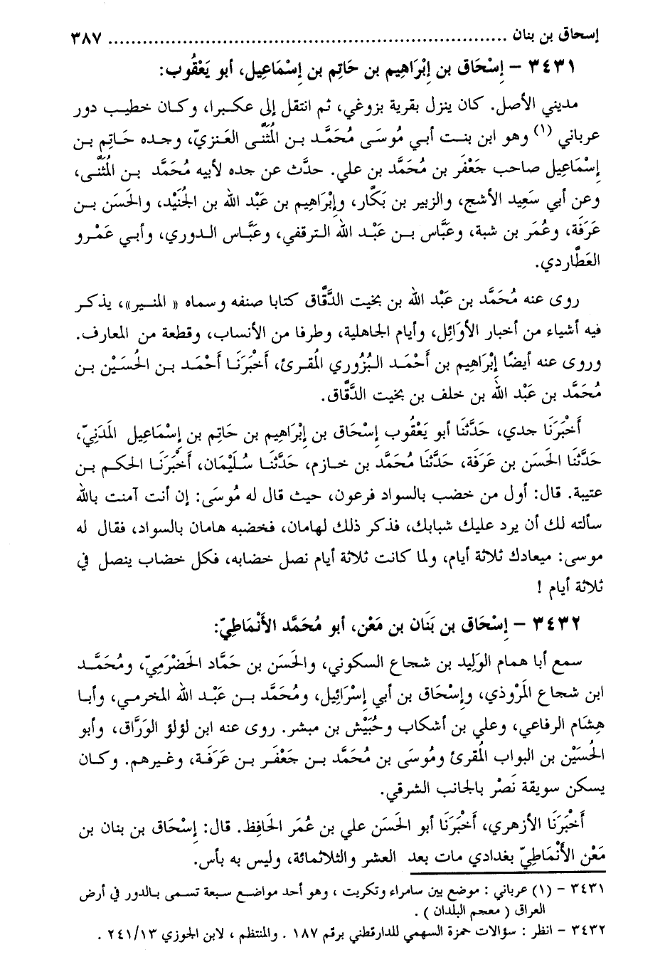 [1] 3432- انظر: سؤالات حمزة السهمي للدار قطني برقم 187. والمنتظم، لابن الجوزي 13/241.