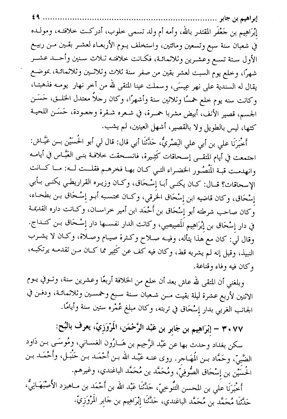 3077- إِبْرَاهِيم بْن جابر بْن عَبْد الرحمن، الْمَرْوَزِيُّ، يعرف بالبح: