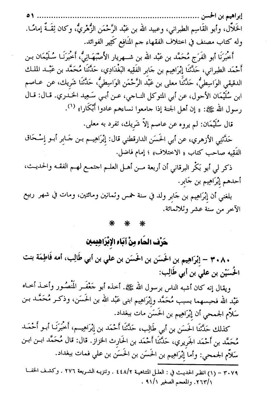 3080- إِبْرَاهِيم بْن الْحَسَن بْن الْحَسَن بْن عَلِيّ بْن أَبِي طَالِب، أمه فاطمة بنت الْحُسَيْن بْنِ عَلِيّ بْنِ أَبِي طَالِبٍ: