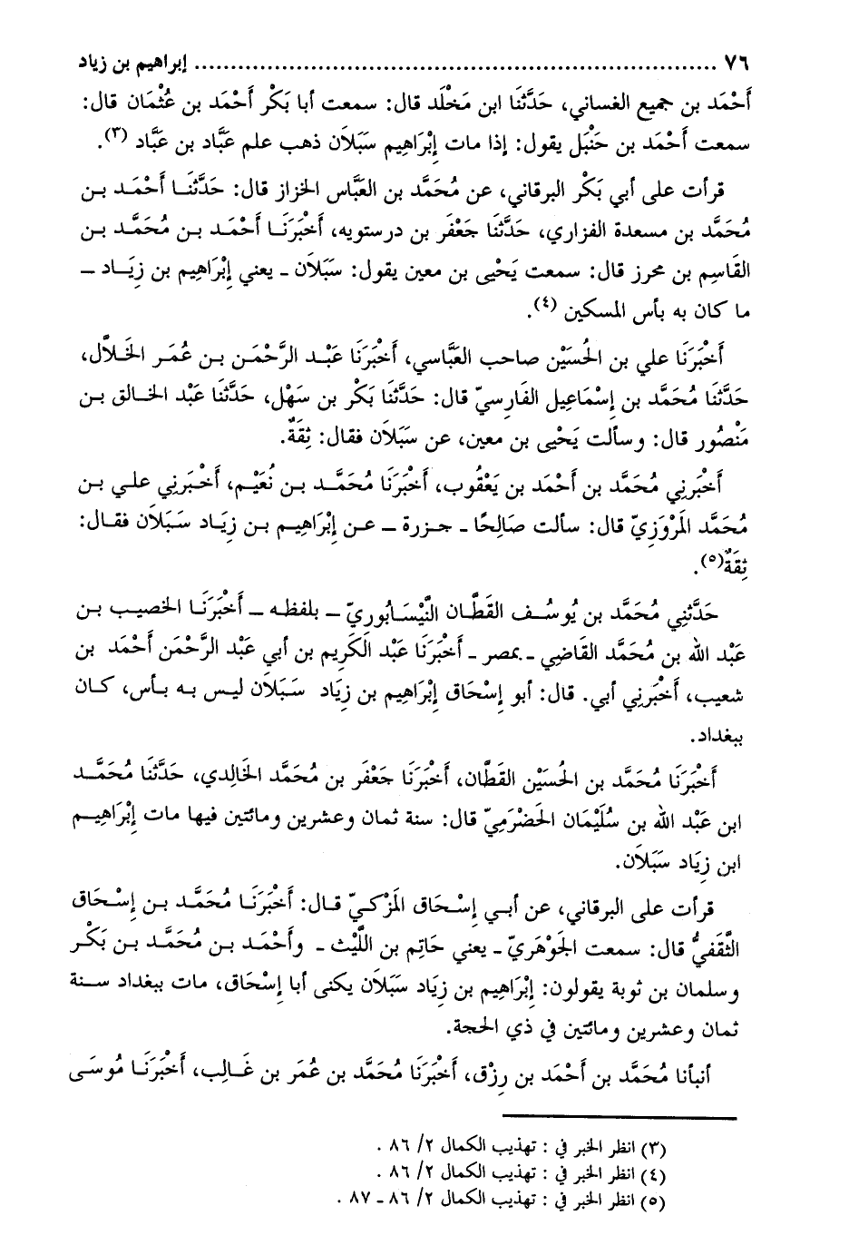 أخبرنا محمّد بن الحسين القطّان، أخبرنا جعفر بن محمّد الخالدي، حَدَّثَنَا مُحَمَّد ابْن عَبْد اللَّه بْن سُلَيْمَان الحضرمي قَالَ: سنة ثمان وعشرين ومائتين فيها مات إبراهيم ابن زياد سبلان.