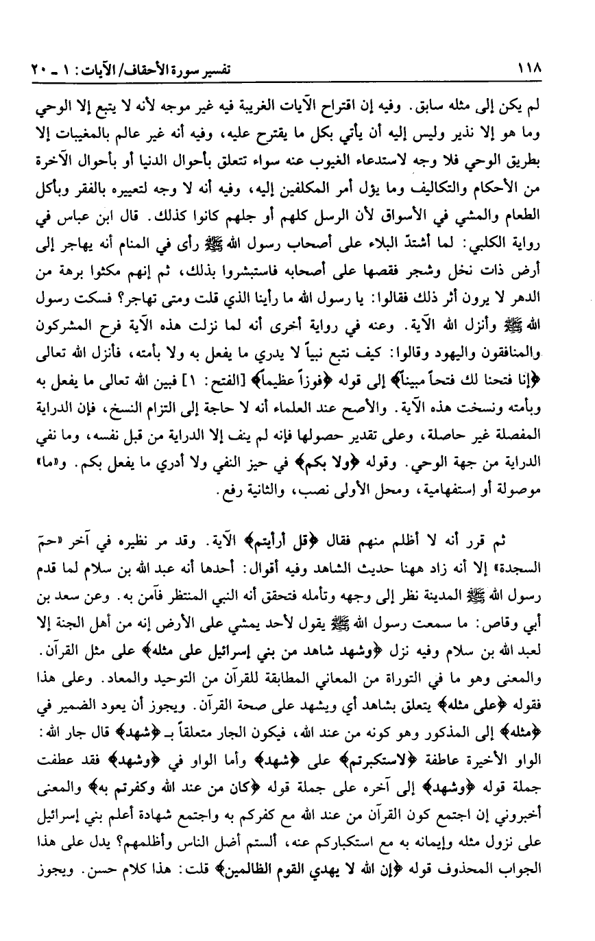 ثم قرر أنه لا أظلم منهم فقال قُلْ أَرَأَيْتُمْ الآية. وقد مر نظيره في آخر «حم السجدة» إلا أنه زاد هاهنا حديث الشاهد وفيه أقوال: أحدها أنه عبد الله بن سلام لما قدم رسول الله صلى الله عليه وسلم المدينة نظر إلى وجهه وتأمله فتحقق أنه النبي المنتظر فآمن به. وعن سعد بن أبي وقاص: ما سمعت رسول الله صلى الله عليه وسلم يقول لأحد يمشي على الأرض إنه من أهل الجنة إلا لعبد الله بن سلام وفيه نزل وَشَهِدَ شاهِدٌ مِنْ بَنِي إِسْرائِيلَ عَلى مِثْلِهِ على مثل القرآن.