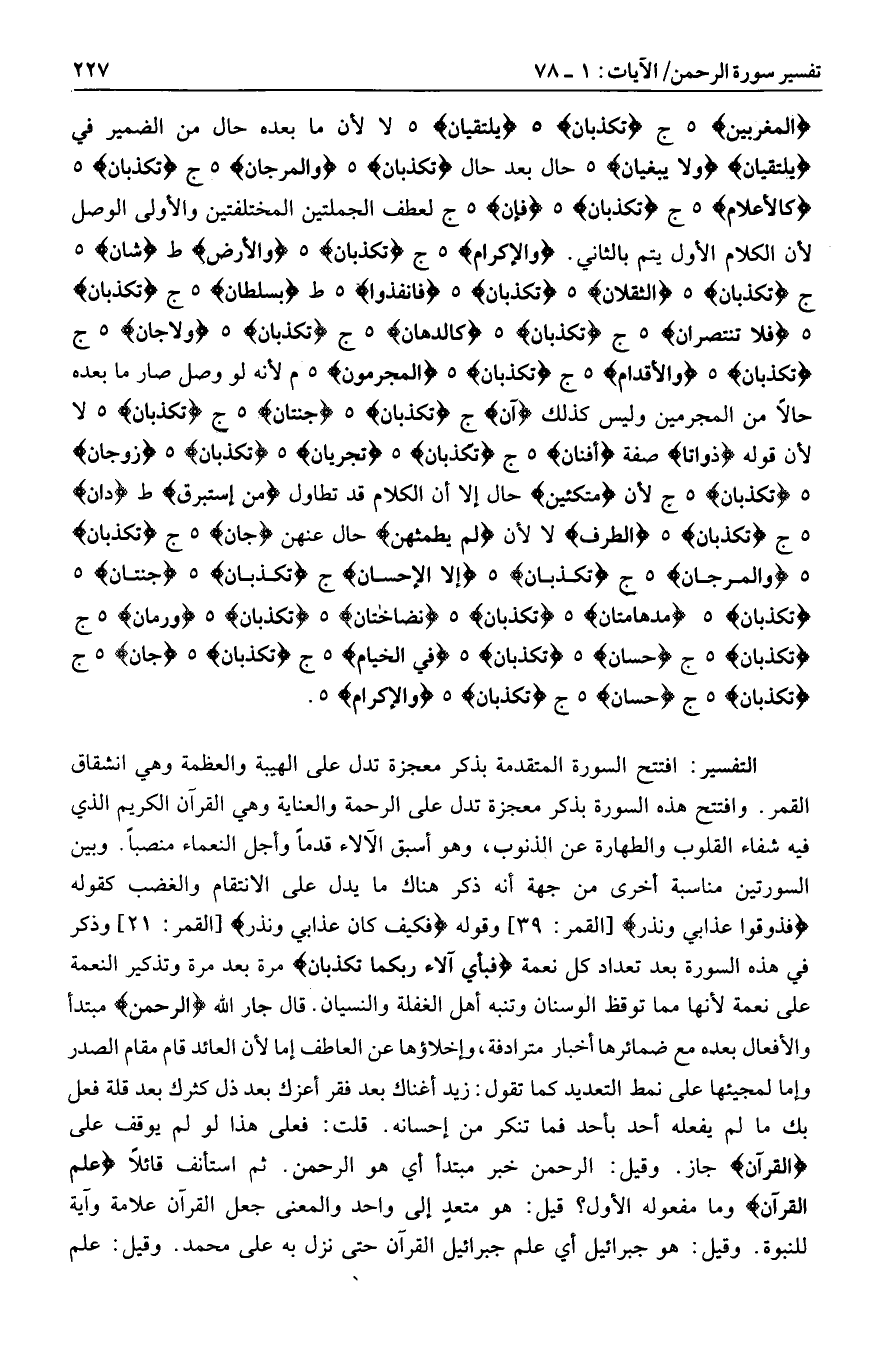 هـ تُكَذِّبانِ هـ وَرُمَّانٌ هـ ج تُكَذِّبانِ هـ ج حِسانٌ هـ تُكَذِّبانِ هـ فِي الْخِيامِ هـ ج تُكَذِّبانِ هـ جَانٌّ هـ ج تُكَذِّبانِ هـ ج حِسانٍ هـ ج تُكَذِّبانِ هـ وَالْإِكْرامِ هـ.