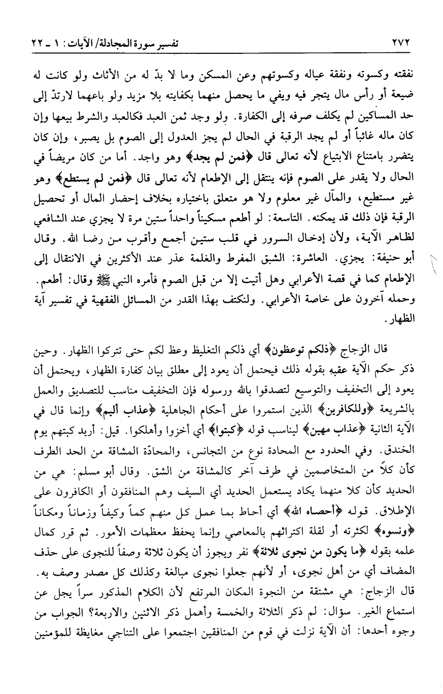 وحمله آخرون على خاصة الأعرابي. ولنكتف بهذا القدر من المسائل الفقهية في تفسير آية الظهار.