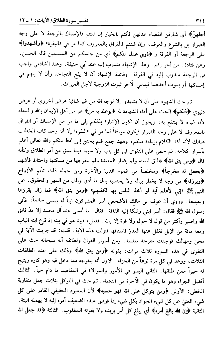 أي شارفن انقضاء عدتهن فأنتم بالخيار إن شئتم فالإمساك بالرجعة لا على وجه الضرار بل بالشرع والعرف، وإن شئتم فالفراق بالمعروف كما مر في «البقرة» وَأَشْهِدُوا على الرجعة أو الفرقة وذَوَيْ عَدْلٍ مِنْكُمْ أي من جنسكم من المسلمين قاله الحسن.