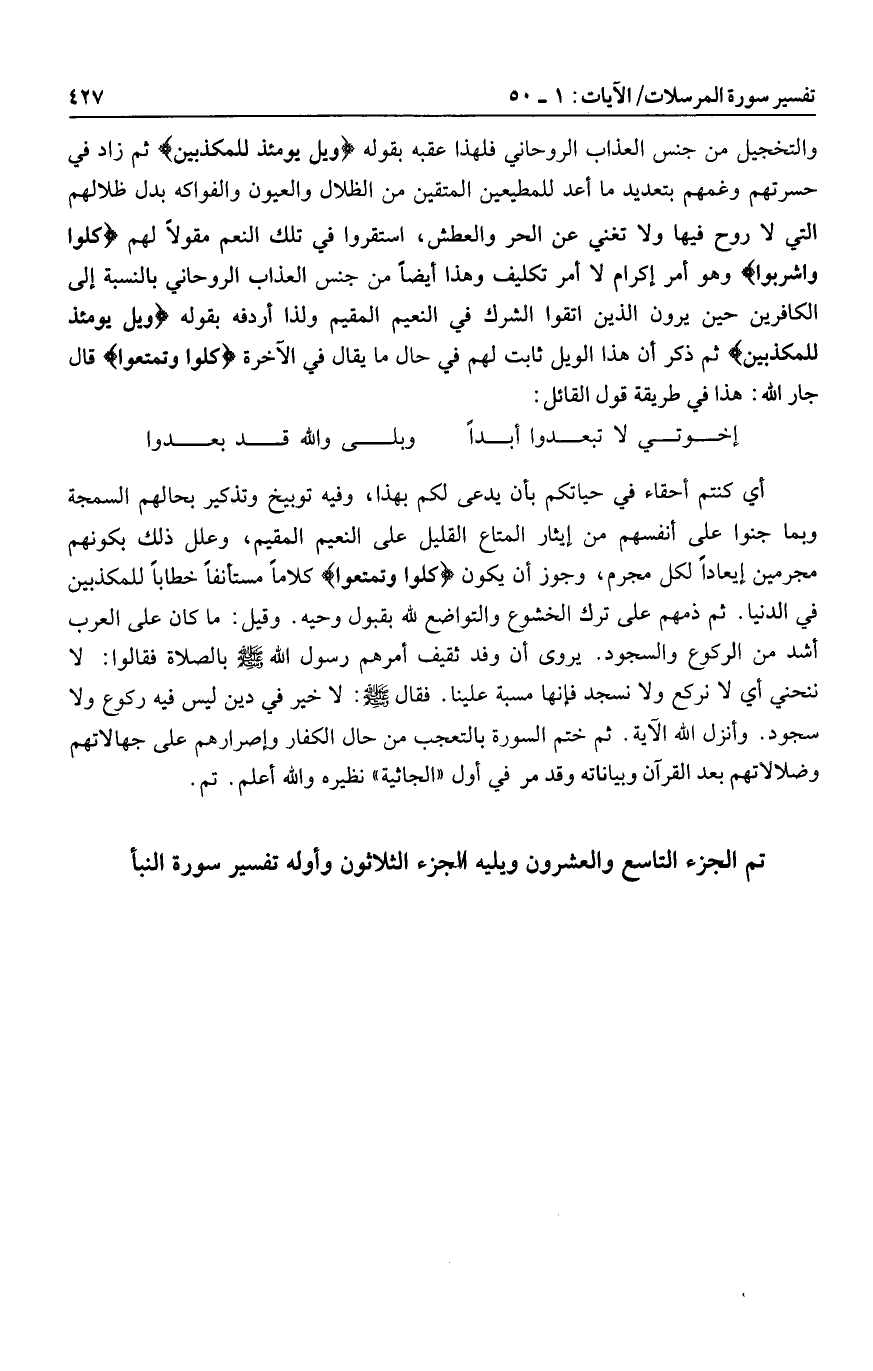 تم الجزء التاسع والعشرون ويليه الجزء الثلاثون وأوله تفسير سورة النبأ