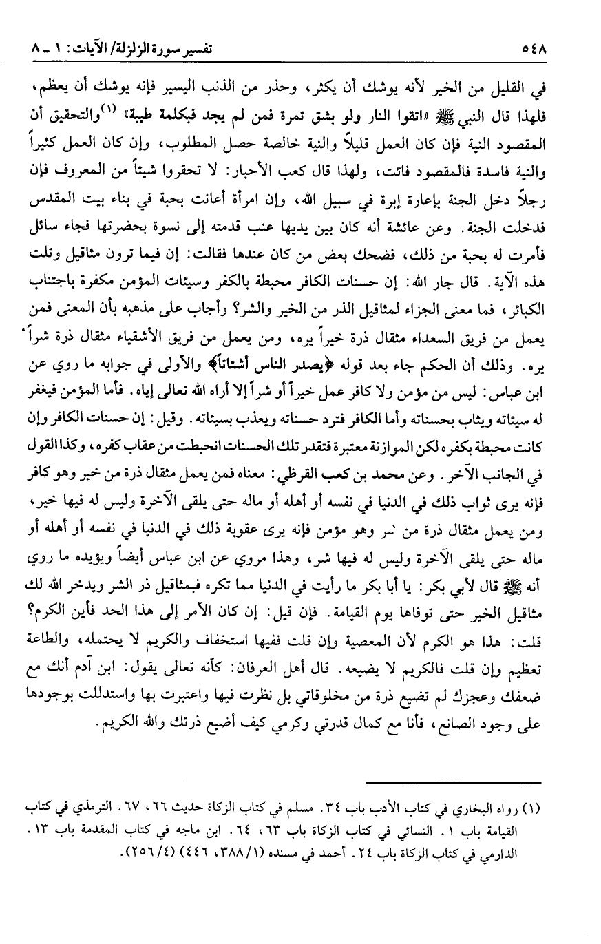 (1) رواه البخاري في كتاب الأدب باب 34. مسلم في كتاب الزكاة حديث 66، 67. الترمذي في كتاب القيامة باب 1. النسائي في كتاب الزكاة باب 63، 64. ابن ماجه في كتاب المقدمة باب 13.