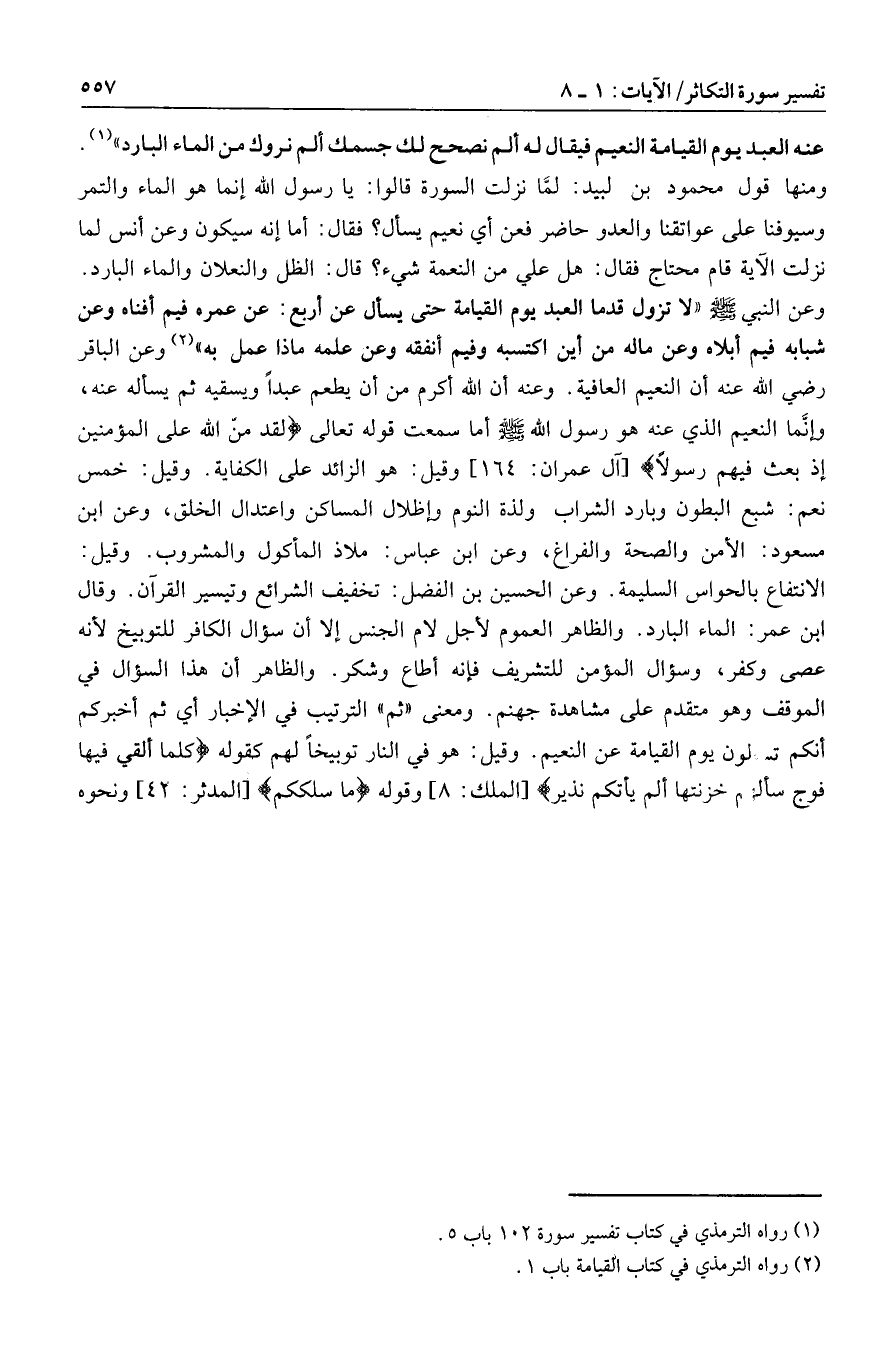 (1) رواه الترمذي في كتاب تفسير سورة 102 باب 5.