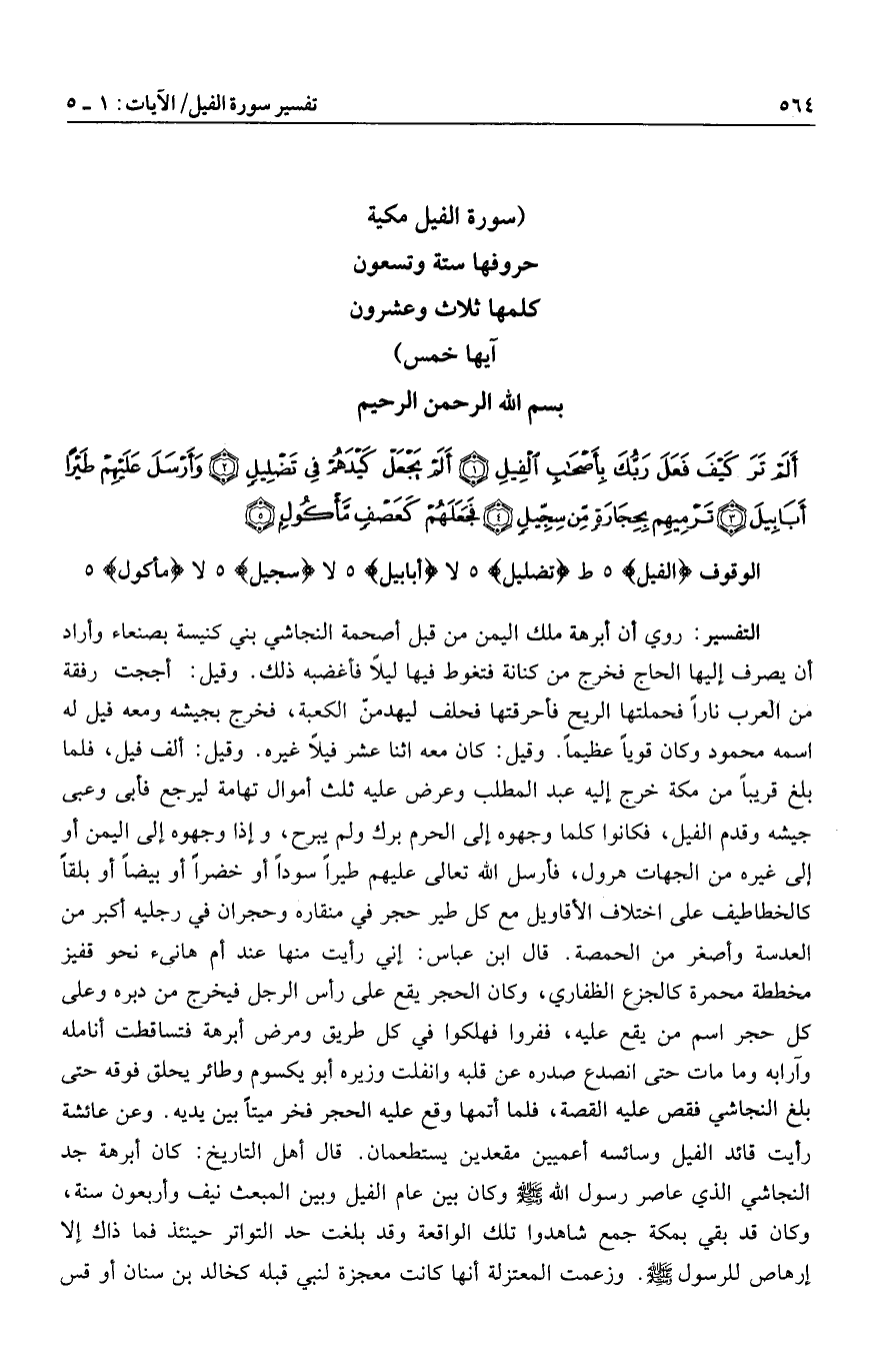 الْفِيلِ هـ ط تَضْلِيلٍ هـ لا أَبابِيلَ هـ لا سِجِّيلٍ هـ لا مَأْكُولٍ هـ