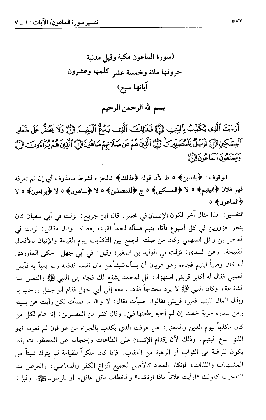 بِالدِّينِ هـ ط لأن قوله فَذلِكَ كالجزاء لشرط محذوف أي إن لم تعرفه فهو فلان الْيَتِيمَ هـ لا الْمِسْكِينِ هـ ج لِلْمُصَلِّينَ هـ لا ساهُونَ هـ لا يُراؤُنَ هـ لا الْماعُونَ هـ