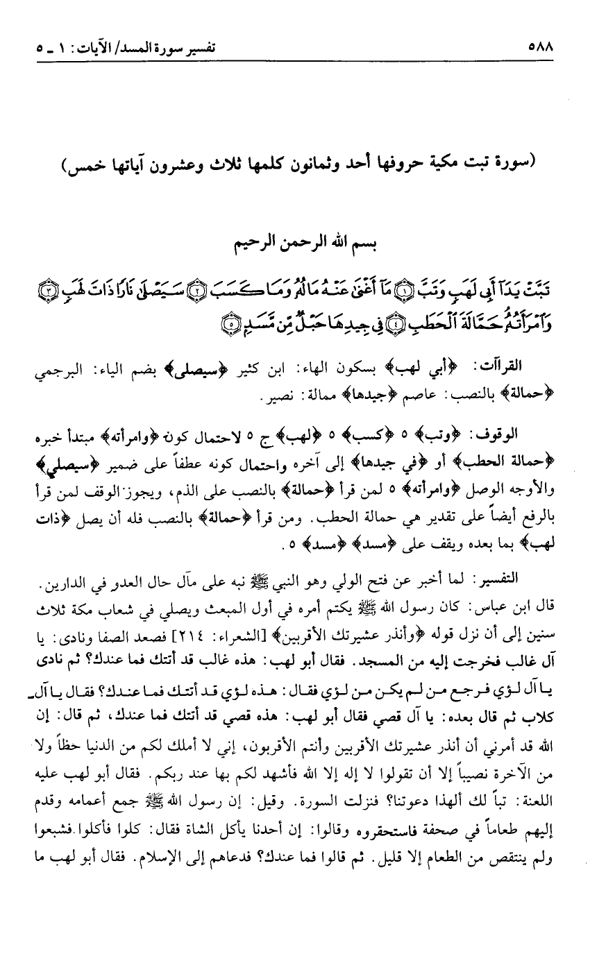 أبي لهب بسكون الهاء: ابن كثير سيصلى بضم الياء: البرجمي حَمَّالَةَ بالنصب: عاصم جِيدِها ممالة: نصير.