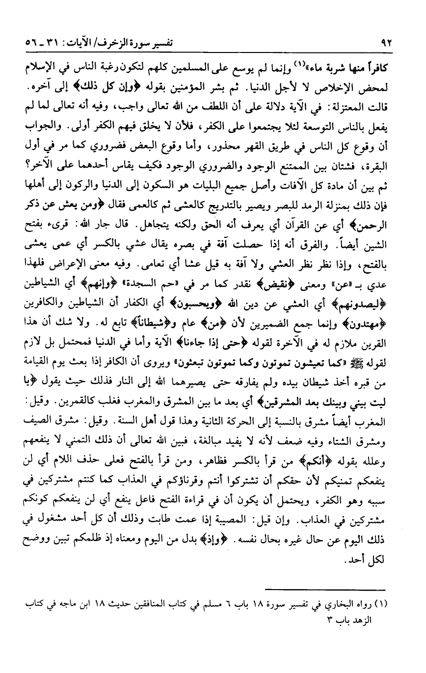 (1) رواه البخاري في تفسير سورة 18 باب 6 مسلم في كتاب المنافقين حديث 18 ابن ماجه في كتاب الزهد باب 3