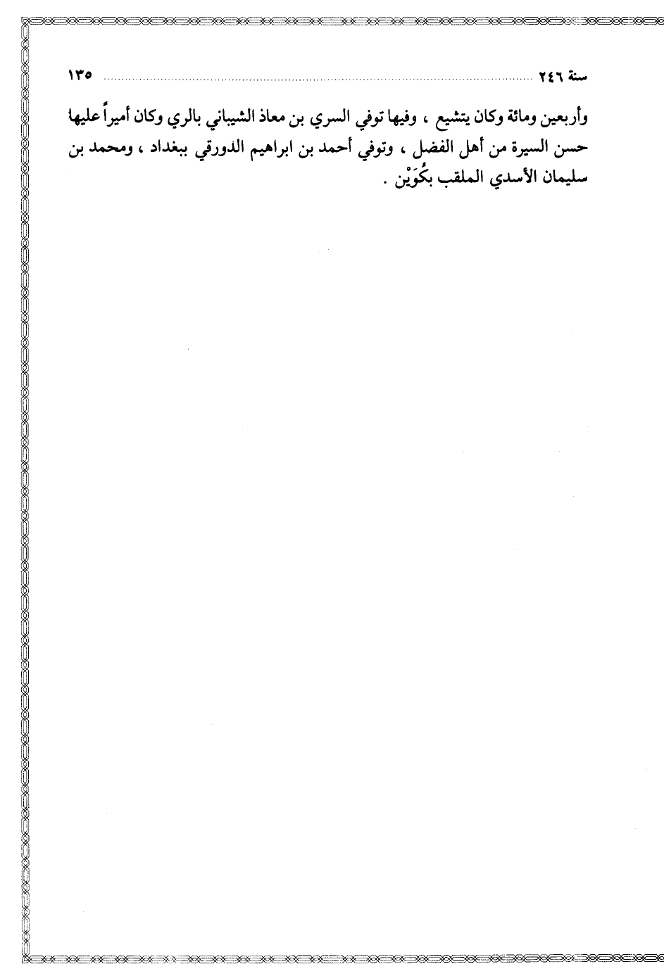 وأربعين ومائة وكان يتشيع وفيها توفي السري بن معاذ الشيباني بالري وكان أميرا عليها حسن السيرة من أهل الفضل وتوفي أحمد بن إبراهيم الدورقي في بغداد ومحمد بن سليمان الأسدي الملقب بكوين