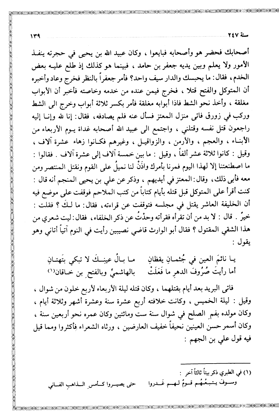 ( أما رأيت صروف الدهر قد فعلت ... بالهاشمي وبالفتح بن خاقان )