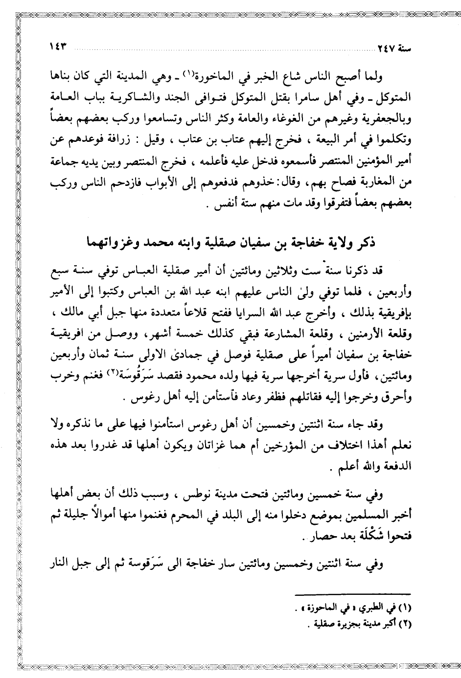 وفي سنة اثنتين وخمسين ومائتين سار خفاجة إلى سرقوسة ثم إلى جبل النار