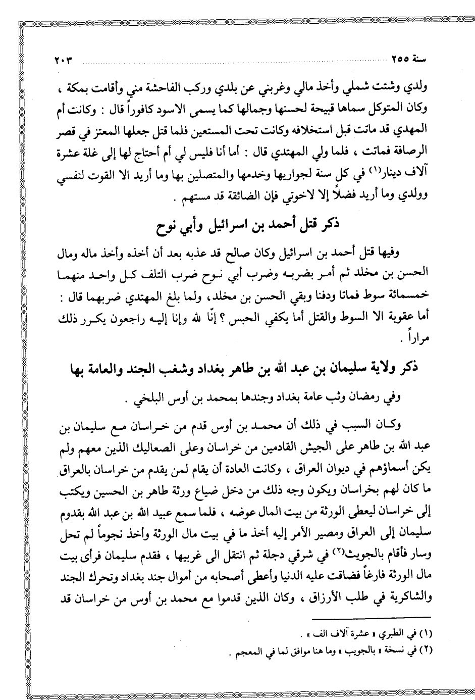 وفيها قتل أحمد بن إسرائيل وكان صالح قد عذبه بعد أن أخذه وأخذ ماله ومال الحسن بن مخلد ثم أمر بضربه وضرب أبي نوح ضرب التلف كل واحد منهما خمسمائة سوط فماتا ودفنا وبقي الحسن بن مخلد ولما بلغ المهتدي ضربهما قال أما عقوبة إلا السوط والقتل أما يكفي الحبس إنا لله وإنا إليه راجعون يكرر ذلك مرارا