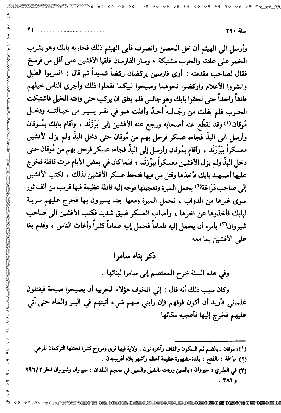 وفي هذه السنة خرج المعتصم إلى سامرا لبنائها