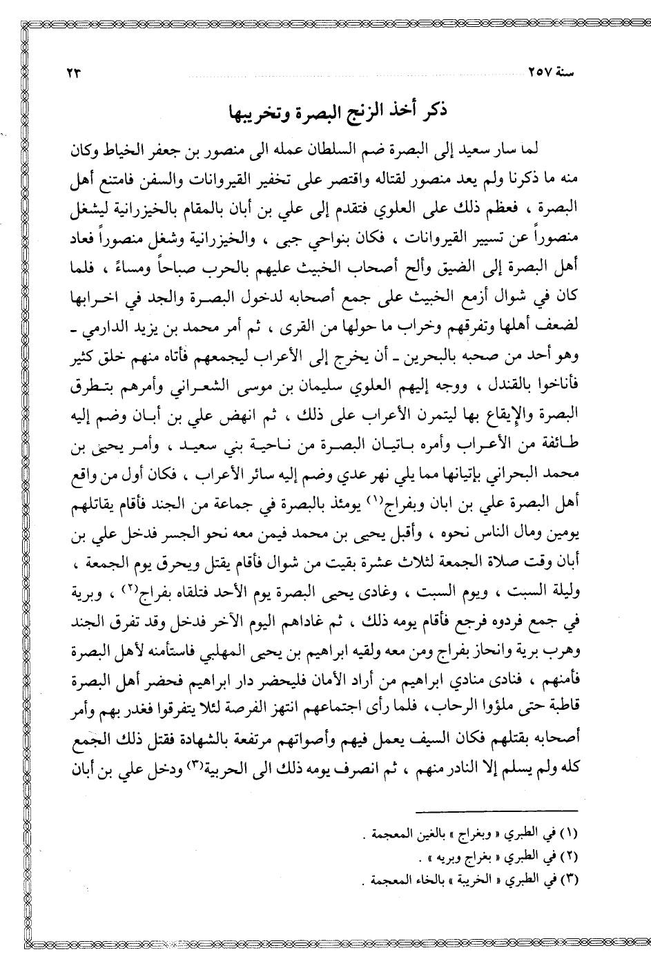 $ ذكر أخذ الزنج البصرة وتخريبها $