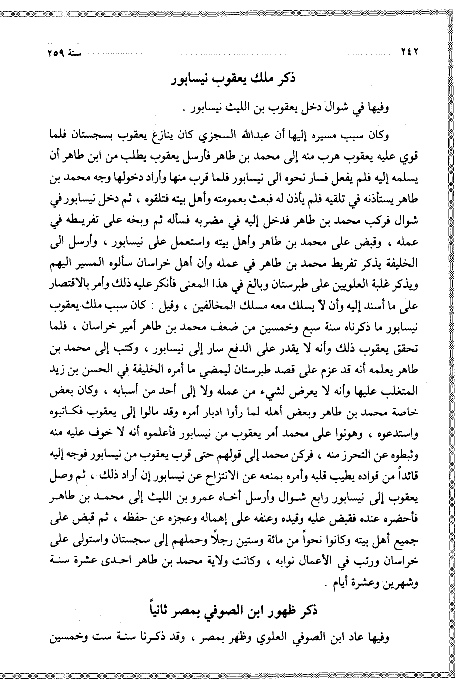 وفيها في شوال دخل يعقوب بن الليث نيسابور