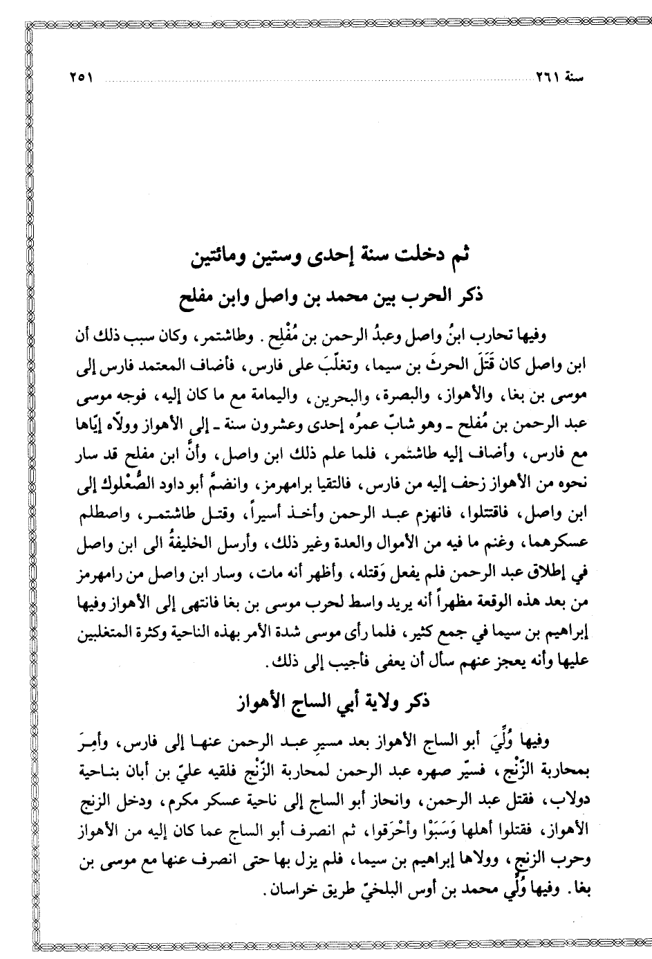 $ ثم دخلت سنة إحدى وستين ومائتين $