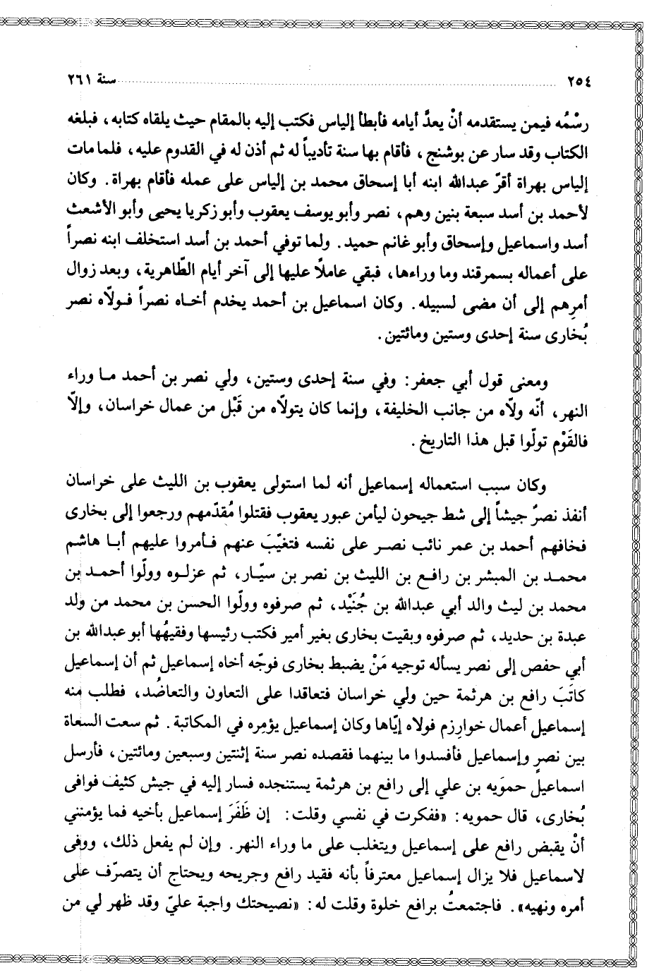 ومعنى قول أبي جعفر وفي سنة إحدى وستين ولي نصر بن أحمد ما وراء النهر أنه ولاه من جانب الخليفة وإنما كان يتولاه من قبل من عمال خراسان وإلا فالقوم تولوا قبل هذا التاريخ