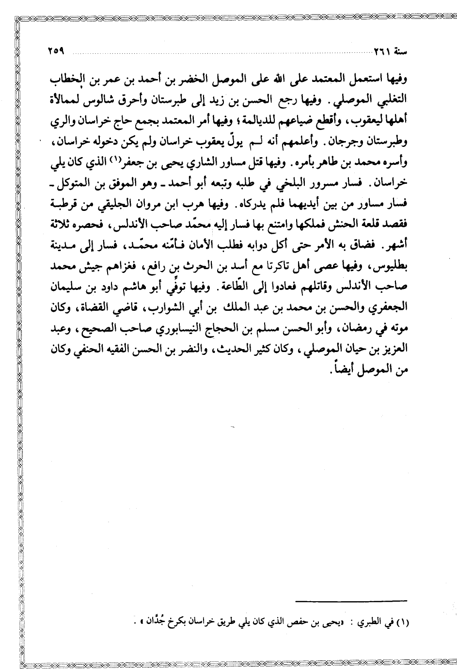 وفيها استعمل المعتمد على الله على الموصل الخضر بن أحمد بن عمر بن الخطاب التغلبي الموصلي