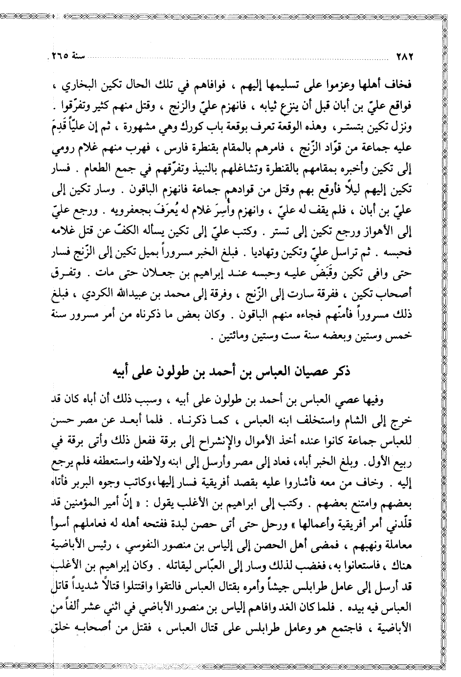 وفيها عصي العباس بن أحمد بن طولون على أبيه وسبب ذلك أن أباه كان قد خرج إلى الشام واستخلف ابنه العباس كما ذكرناه