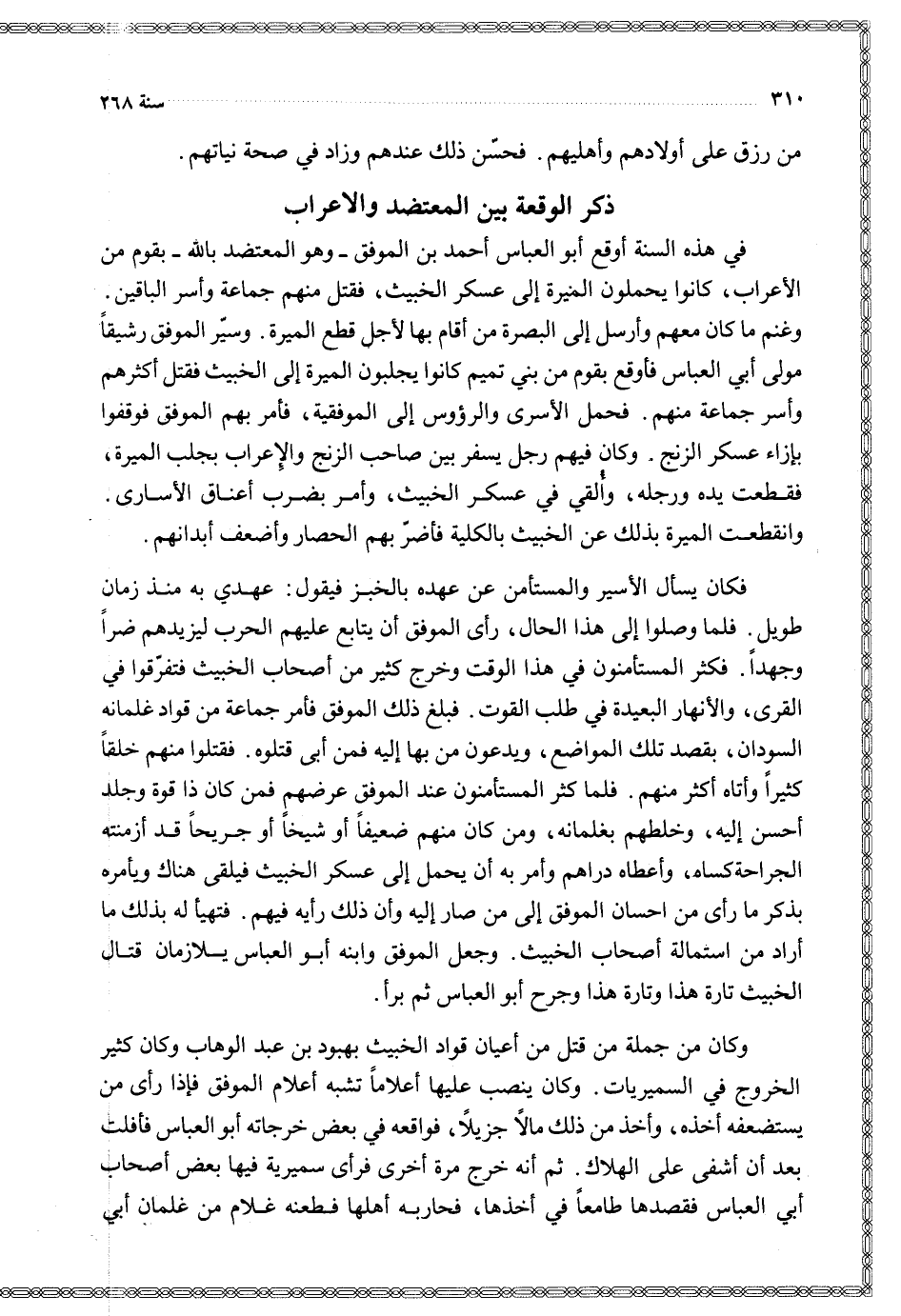 $ ذكر الوقعة بين المعتضد والأعراب $