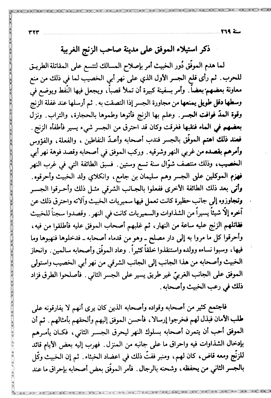 وانحاز الخبيث وأصحابه من هذا الجانب إلى الجانب الشرقي من نهر أبي الخصيب واستولى الموفق على الجانب الغربي غير طريق يسير على الجسر الثاني