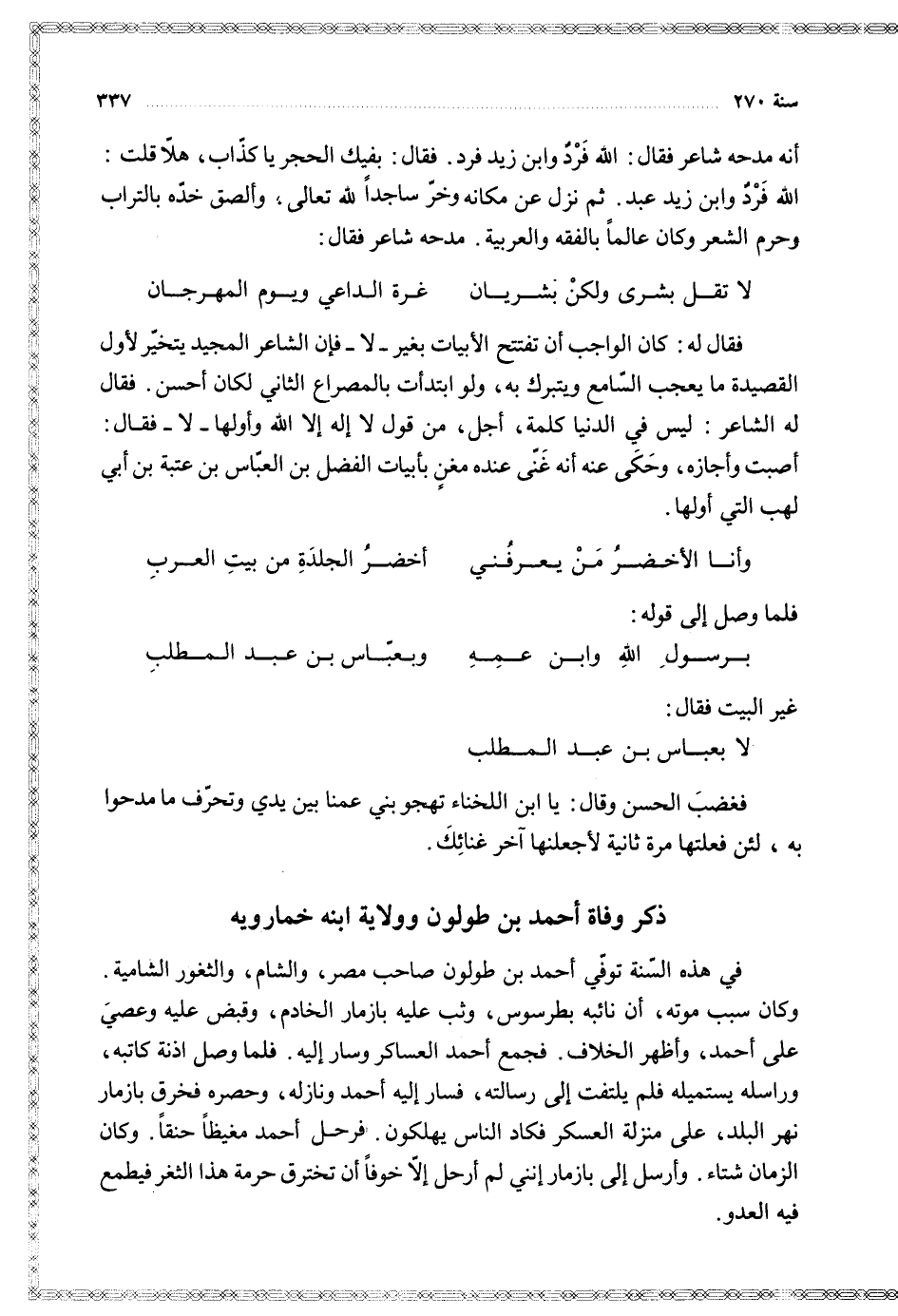 في هذه السنة توفي أحمد بن طولون صاحب مصر والشام والثغور الشامية