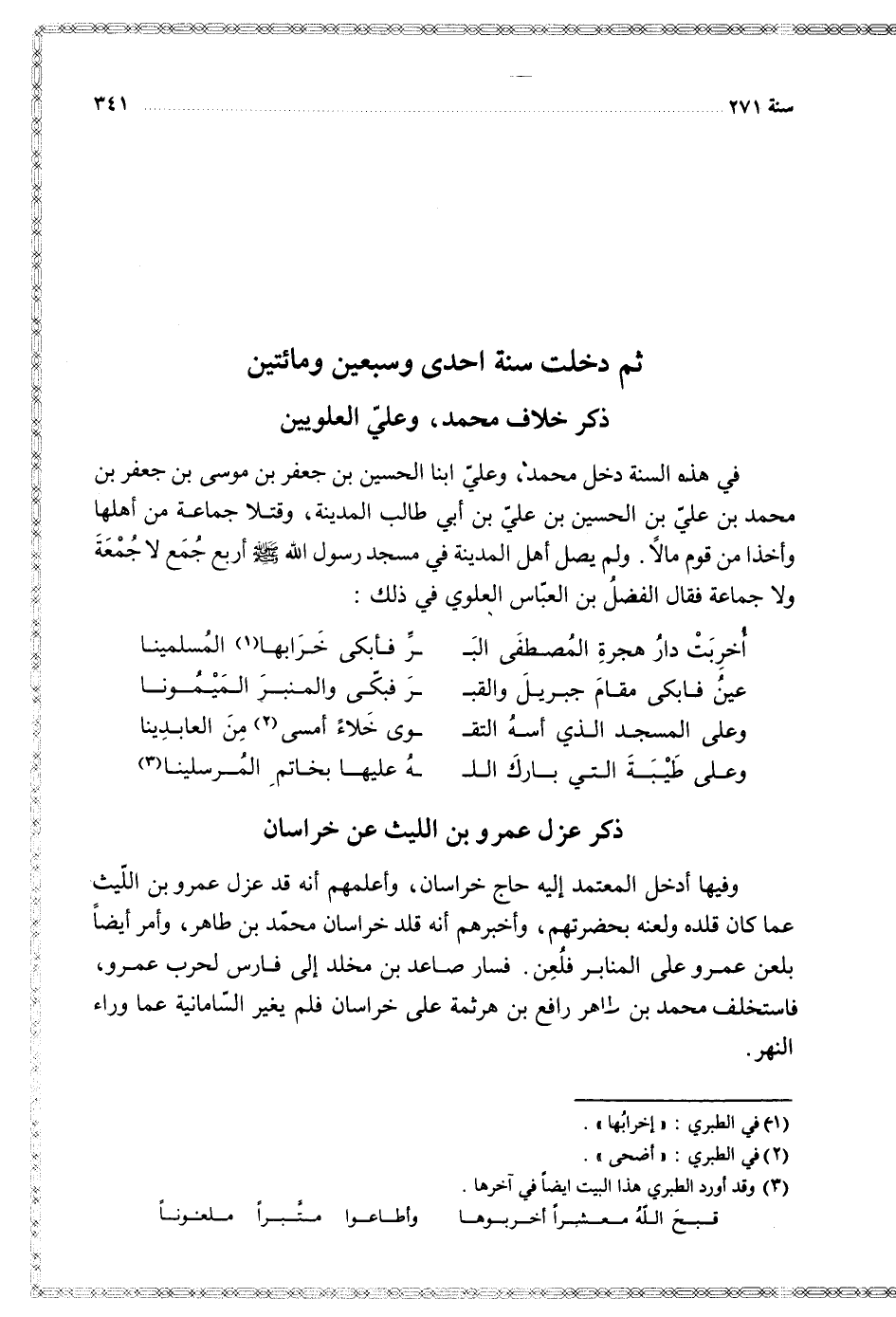 $ ثم دخلت سنة إحدى وسبعين ومائتين $