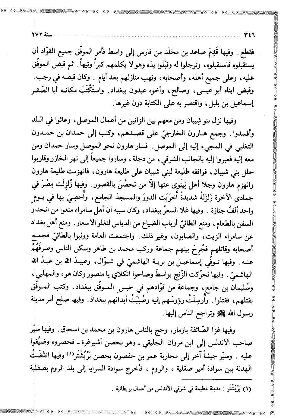 وسير جيشا آخر إلى محاربة عمر بن حفصون بحصن بربشتر وفيها انقضت الهدنة بين سوادة أمير صقلية والروم فأخرج سوادة السرايا إلى بلد الروم بصقلية