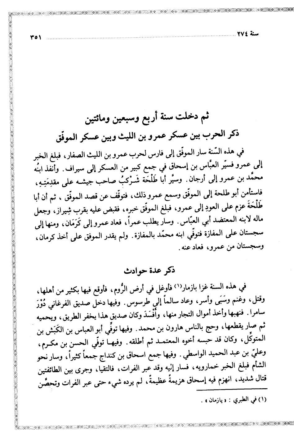 $ ثم دخلت سنة أربع وسبعين ومائتين $