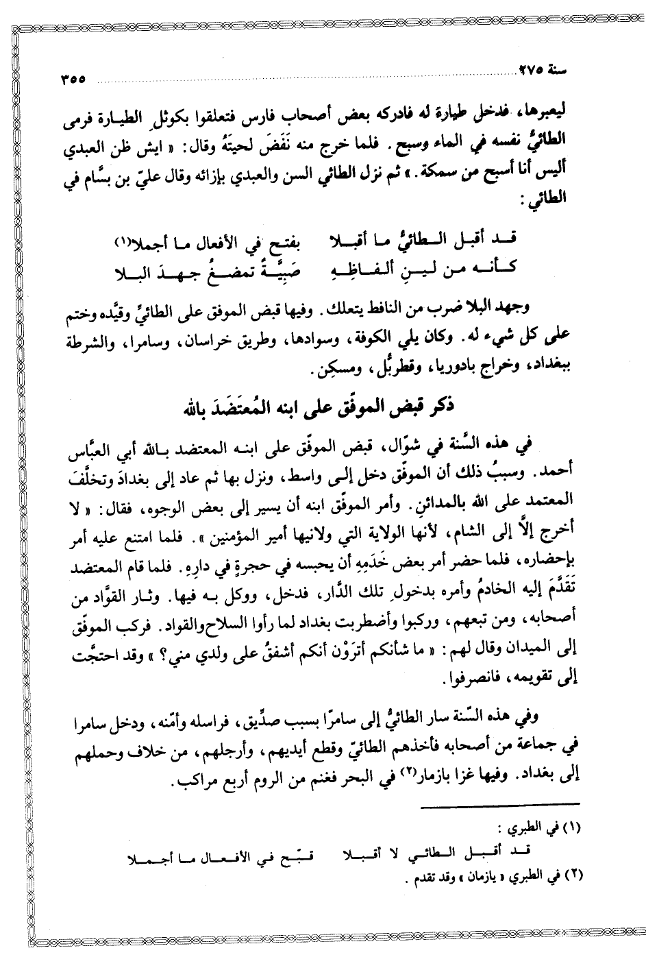 وفيها قبض الموفق على الطائي وقيده وختم على كل شيء له
