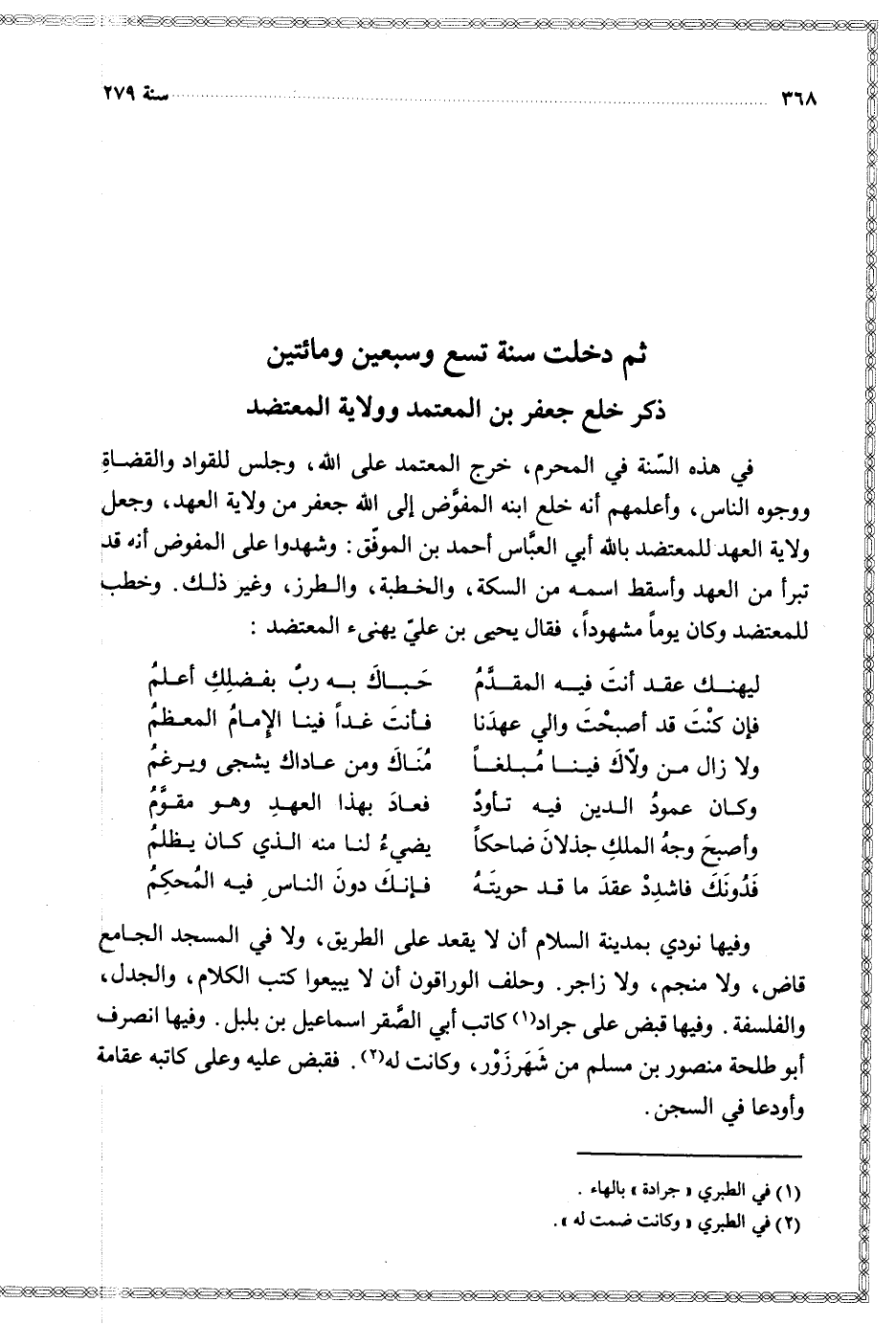 $ ثم دخلت سنة تسع وسبعين ومائتين $