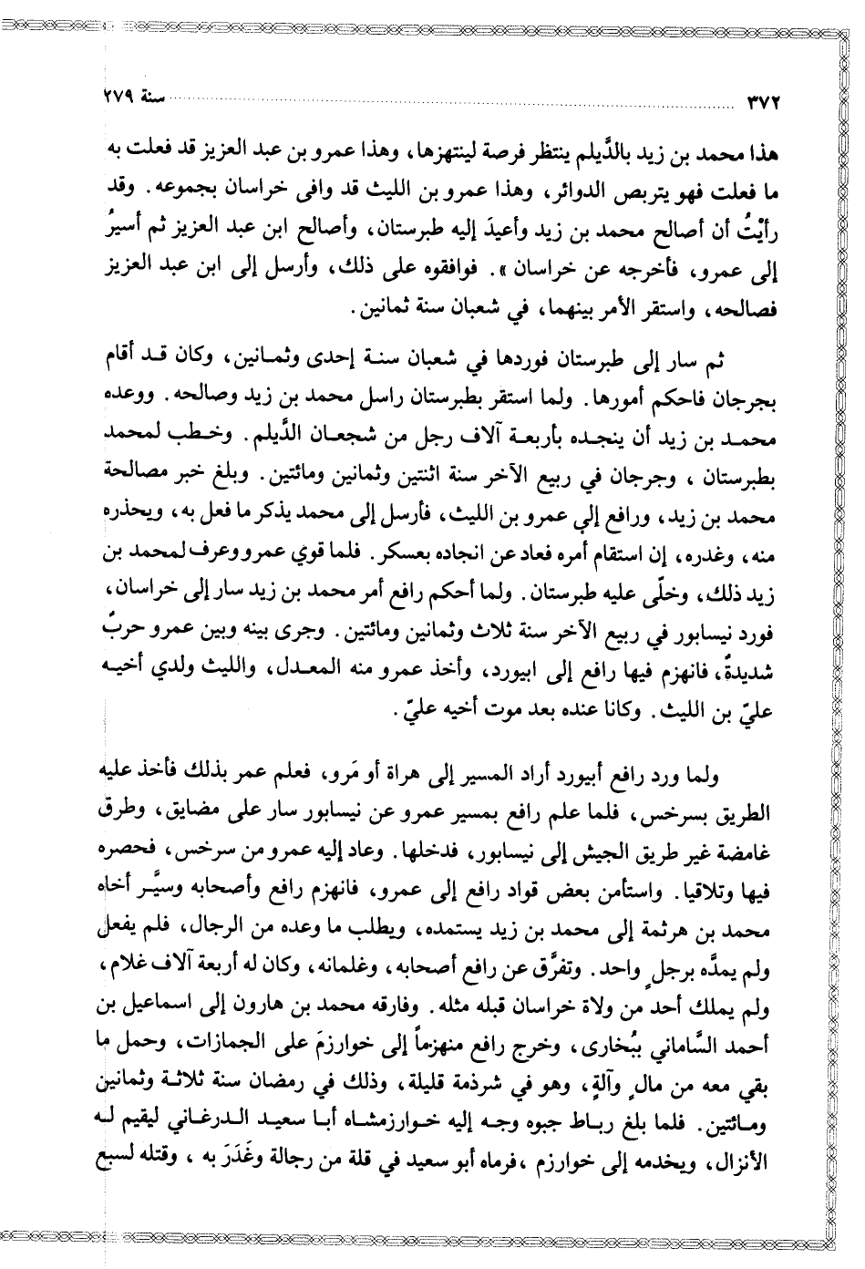 وقد رأيت أن أصالح محمد بن زيد وأعيد إلى طبرستان وأصالح ابن عبد العزيز ثم أسير إلى عمرو فأخرجه عن خراسان