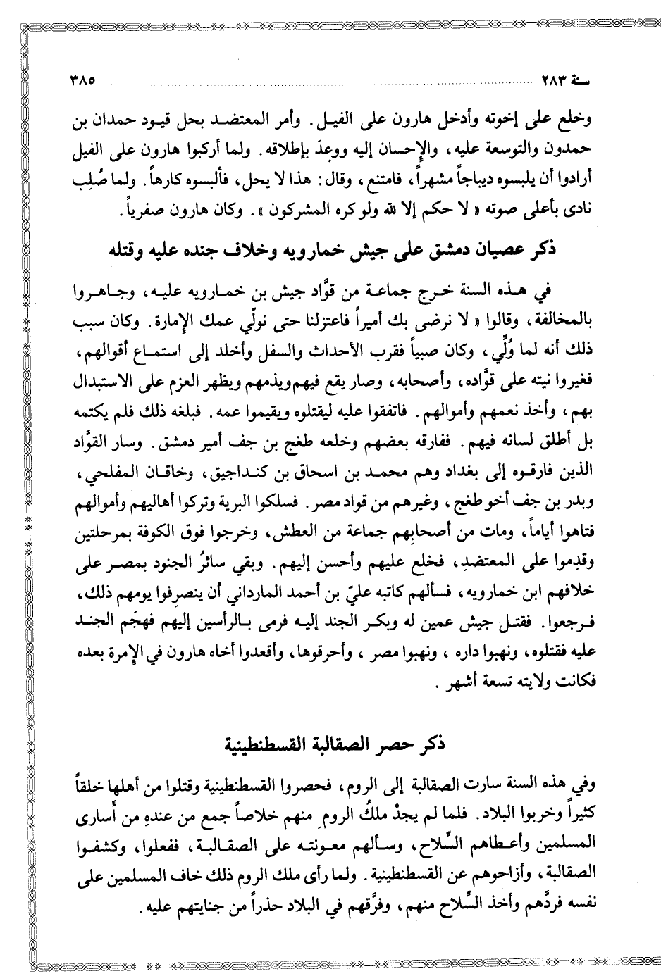 $ ذكر عصيان دمشق على جيش خمارويه وخلاف جنده عليه وقتله $