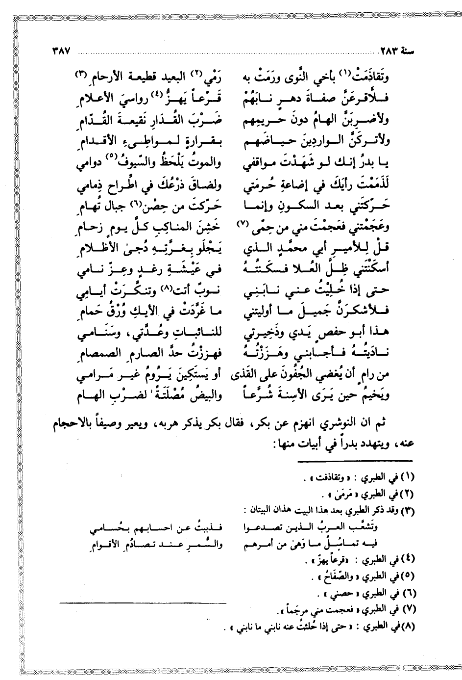ثم ان النوشري انهزم عن بكر فقال بكر يذكر هربه ويعير وصيفا بالاحجام عنه ويتهدد بدرا في أبيات منها