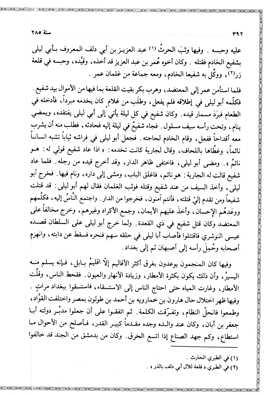 وفيها وثب الحرث عبد العزيز بن أبي دلف المعروف بأبي ليلى بشفيع الخادم فقتله