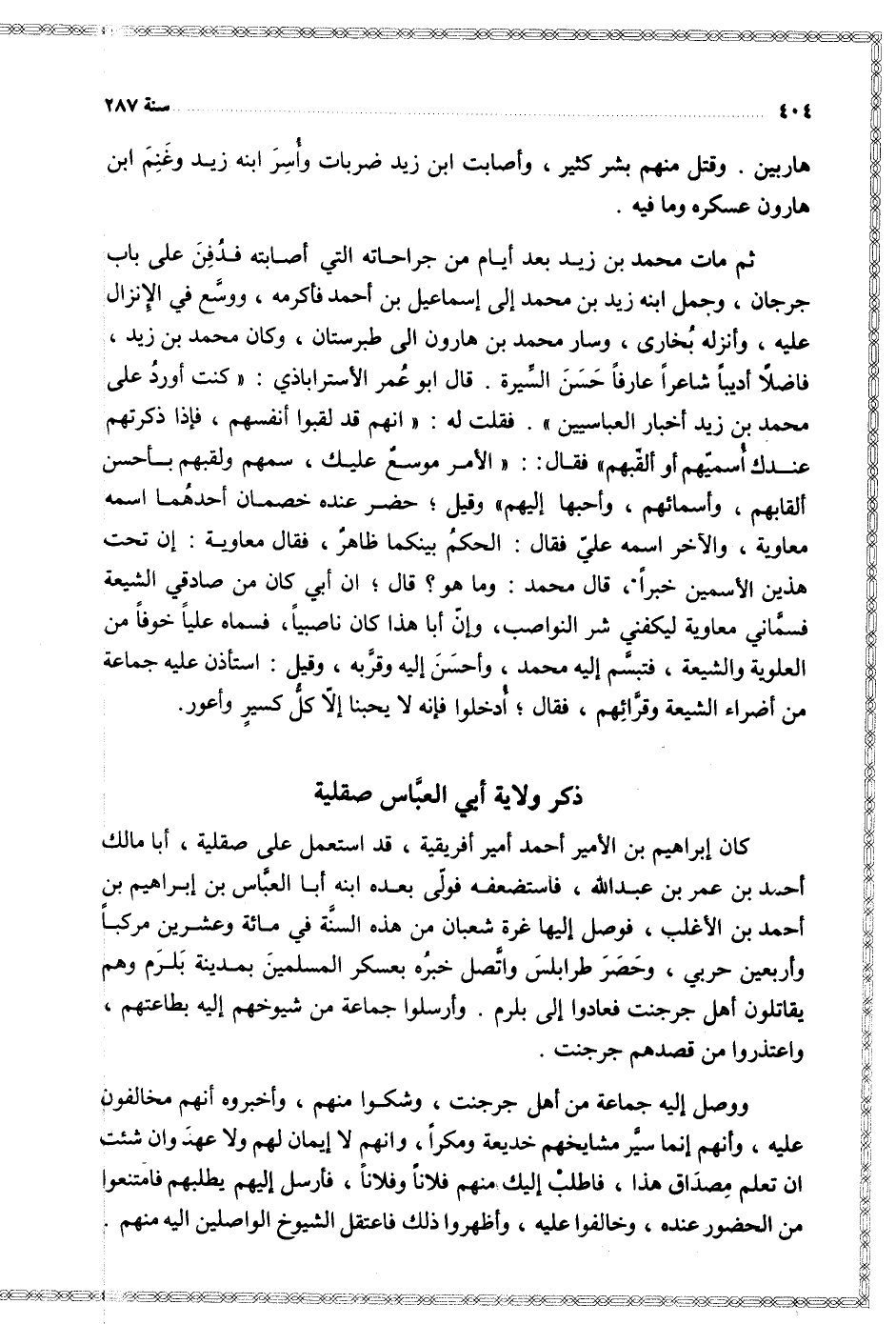 وقتل منهم بشر كثير وأصابت ابن زيد ضربات وأسر ابنه زيد وغنم ابن هارون عسكره وما فيه