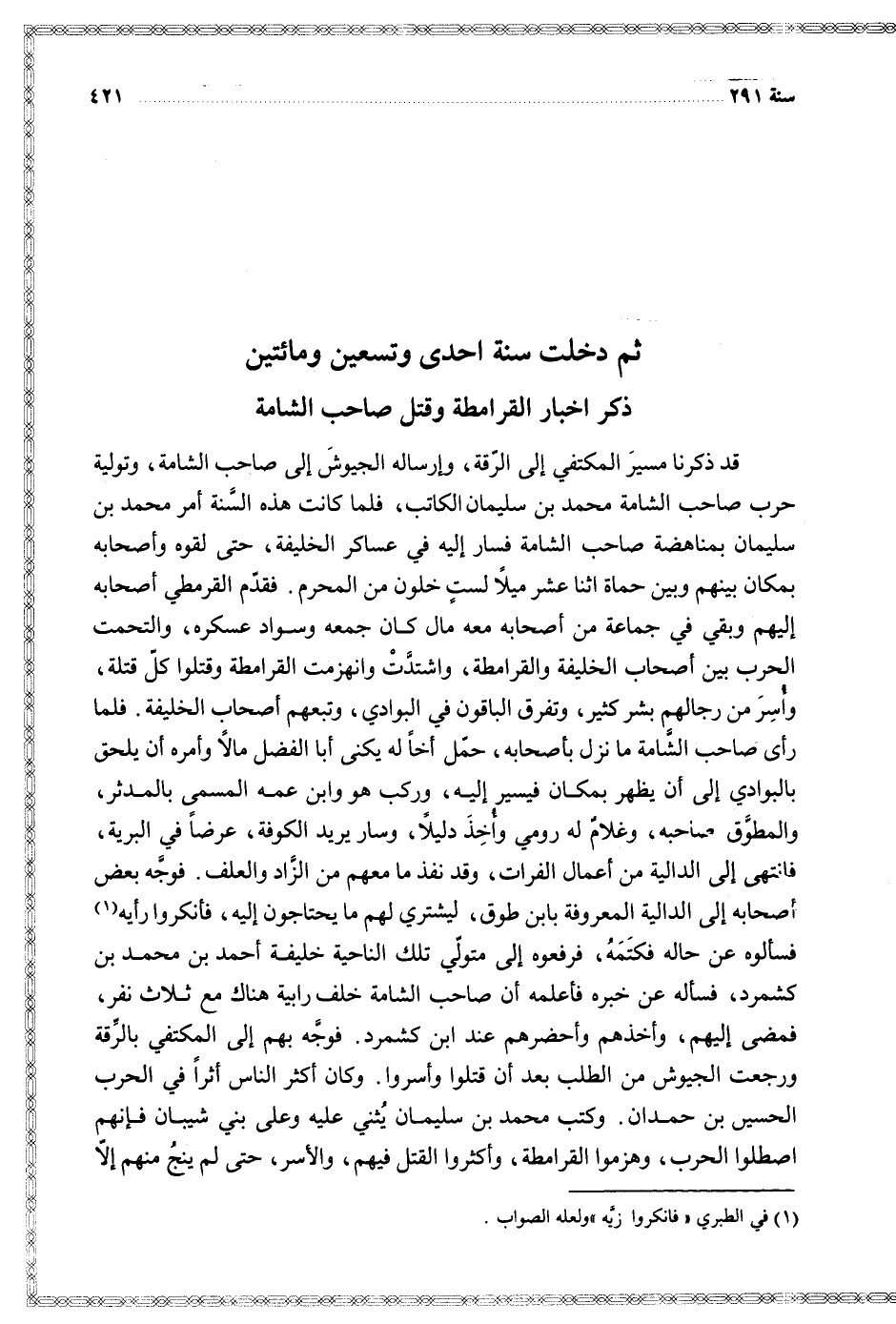 $ ثم دخلت سنة إحدى وتسعين ومائتين $