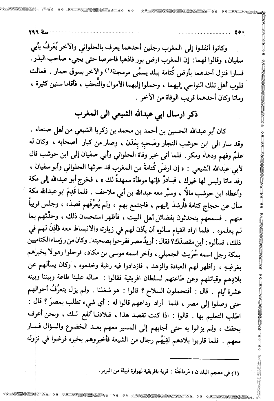 $ ذكر ارسال أبي عبد الله الشيعي إلى المغرب $
