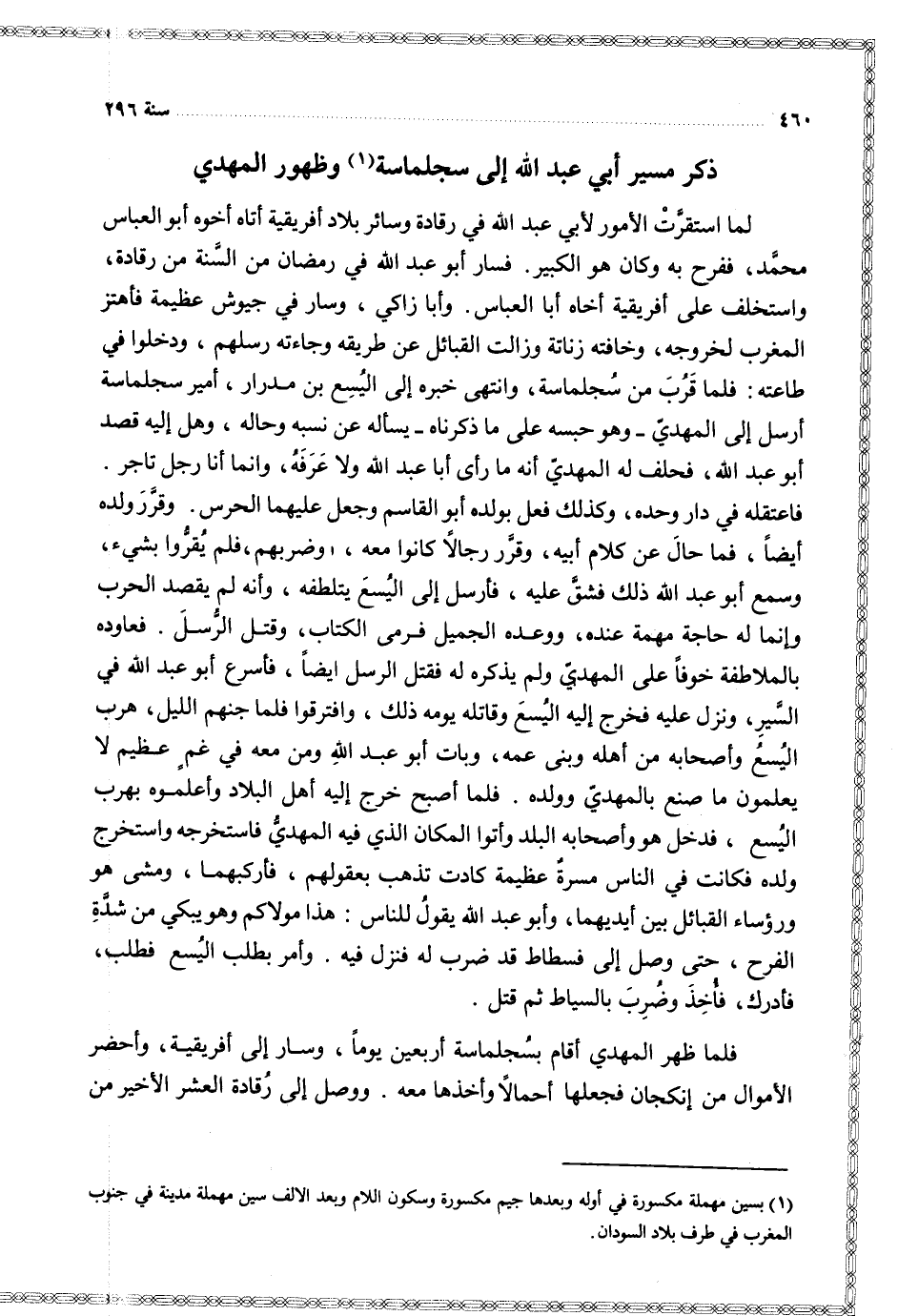 $ ذكر مسير أبي عبد الله إلى سحلماسة وظهور المهدي $