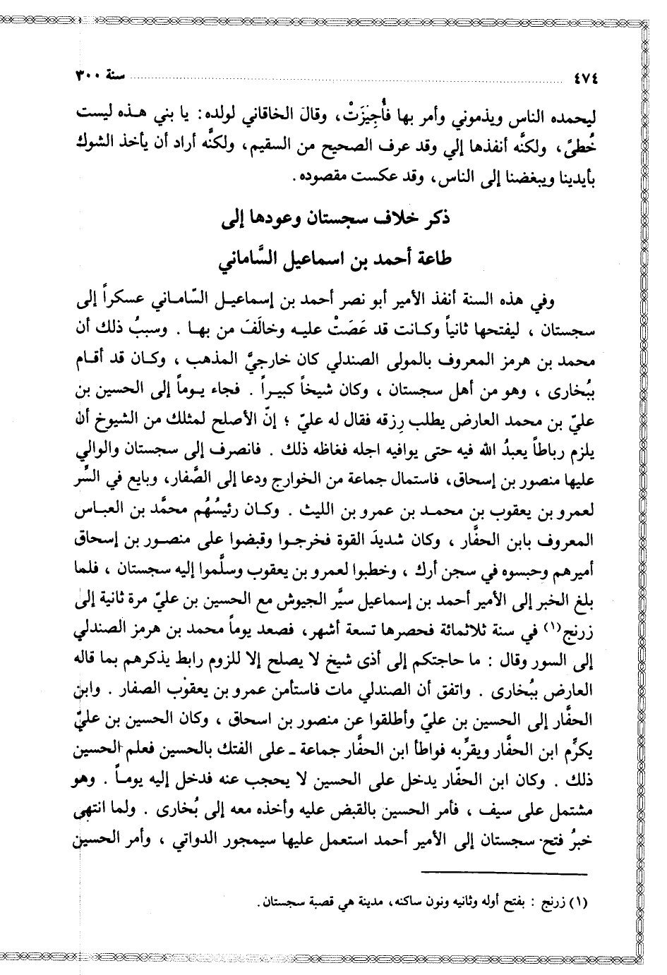 $ ذكر خلاف سجستان وعودها إلى طاعة أحمد بن إسماعيل الساماني $