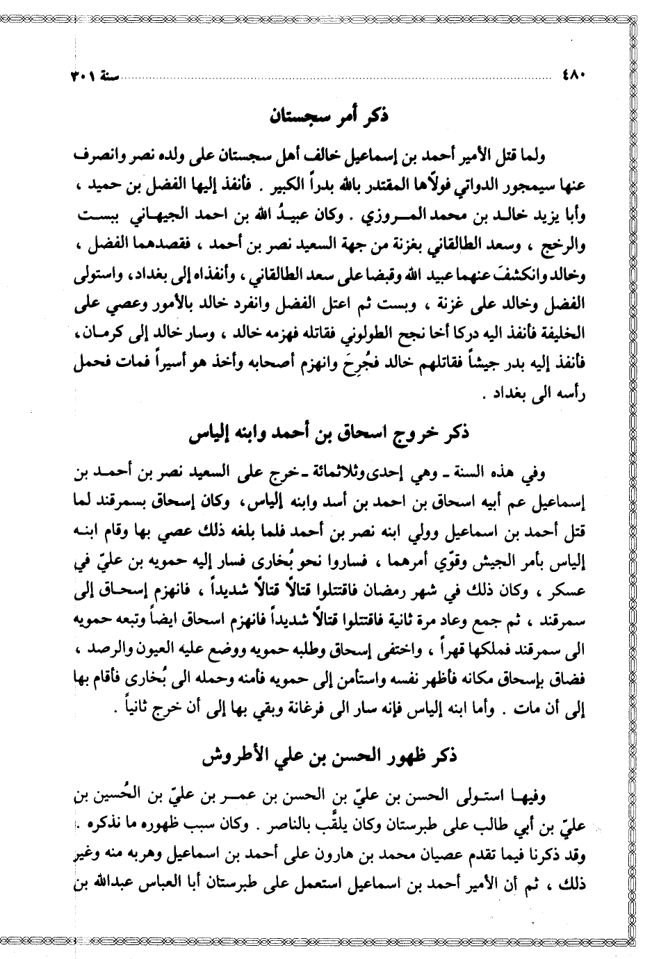 وقد ذكرنا فيما تقدم عصيان محمد بن هارون على أحمد بن إسماعيل وهربه منه وغير ذلك ثم أن الأمير أحمد بن إسماعيل استعمل على طبرستان أبا العباس عبد الله بن