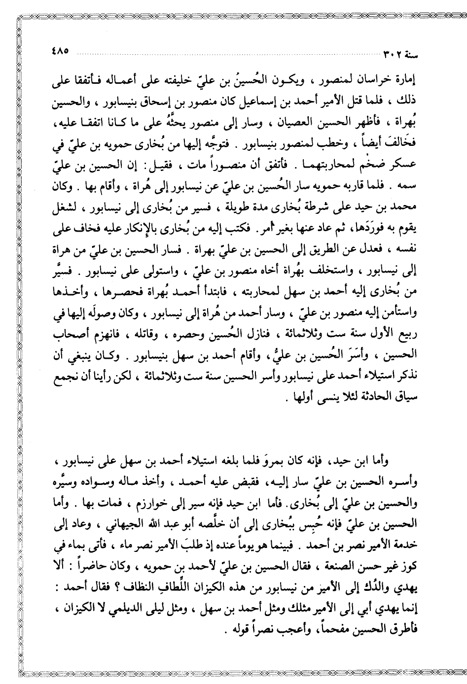 وكان ينبغي أن نذر استيلاء أحمد على نيسابور وأسر الحسين سنة ست وثلاثمائة لكن رأينا أن نجمع سياق الحادثة لئلا ينسى أولها
