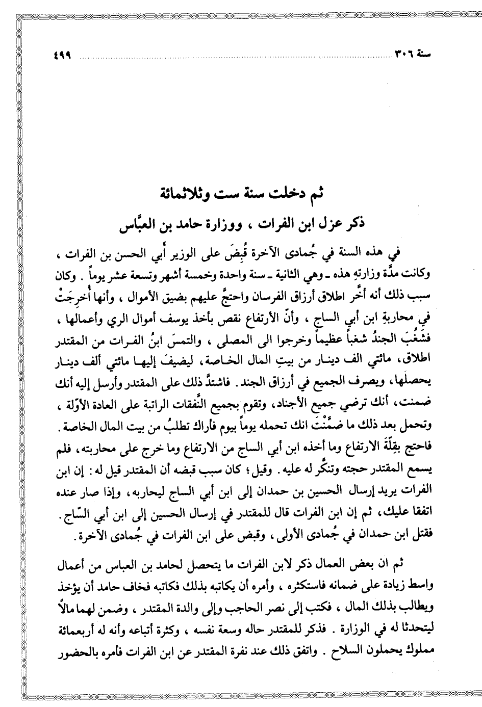 $ ذكر عزل ابن الفرات ووزارة حامد بن العباس $