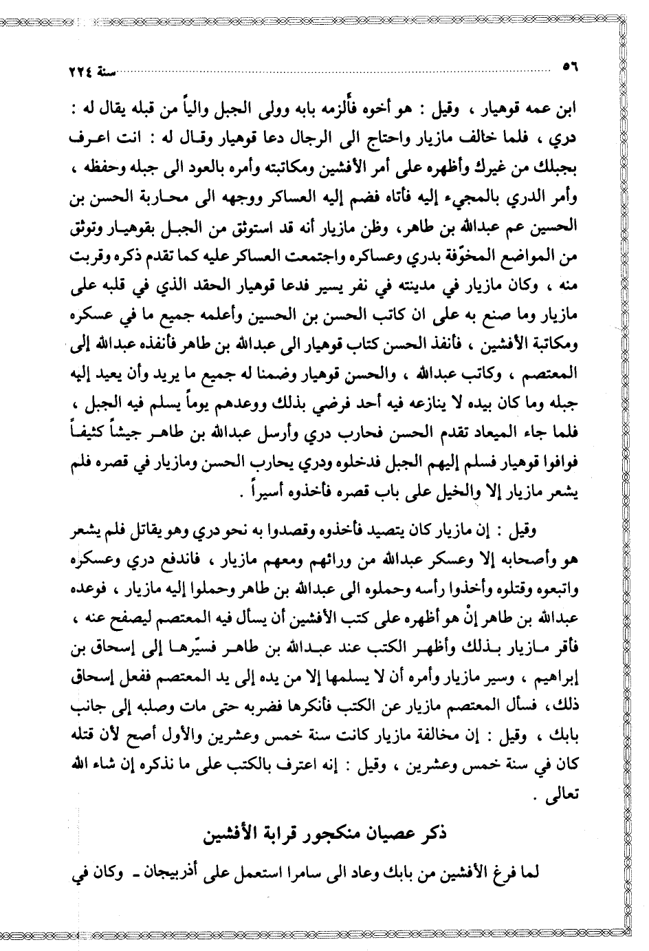 $ ذكر عصيان منكجور قرابة الأفشين $