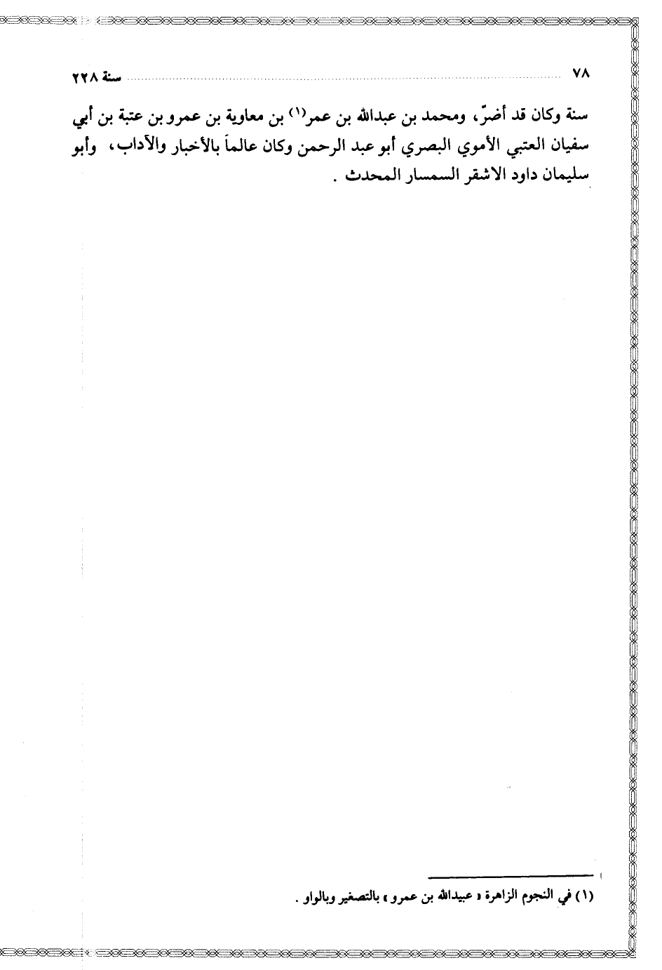 سنة وكان قد أضر ومحمد بن عبد الله بن عمر بن معاوية بن عمرو بن عتبة بن أبي سفيان العتبي الأموي البصري أبو عبد الرحمن وكان عالما بالأخبار والآداب وأبو سليمان داود الأشقر السمسار المحدث