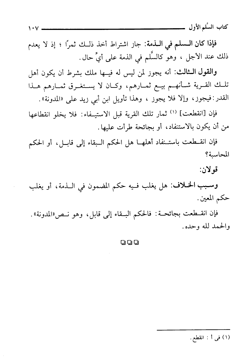 فإن انقطعت بجائحة: فالحكم البقاء إلى قابل، وهو نص "المدونة". والحمد لله وحده.